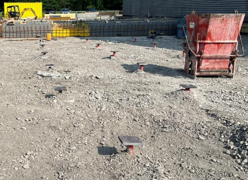 Erstellung von 99 Mikropfählen (Längen 9 - 13m) mit dem System STUTZ Drehpresspfahl. Einsatz von thixotrop verdicktem Zement als Injektionsgut, um Verluste und Verunreinigungen des angeschnittenen Grundwasserleiters zu minimierien.
