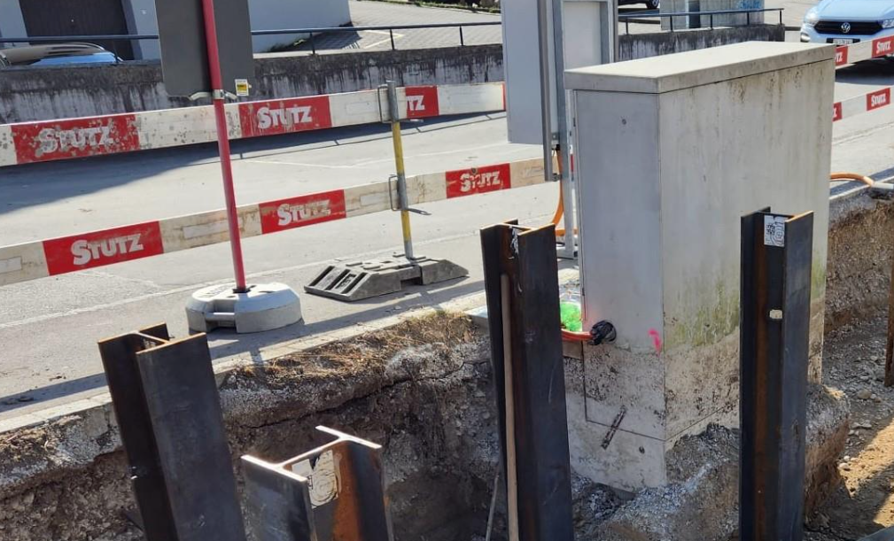 Bei diesem Projekt wurden HEB Träger mit dem Bagger mit einer Genauigkeit von 4 cm gerammt. Es ist eine spezielle Schablone durch unsere Werkstatt geschweisst worden.
