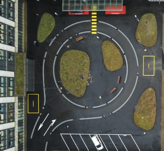 Erst musste eine 12 Meter hohe Aufschüttung gemacht werden, anschliessend wurde die Kanalisation und der Asphalt eingebaut.Im Weiteren wurden die Abschlüsse der Pflanzentröge und eine 300 Meter lange Wasserrigole eingebaut.