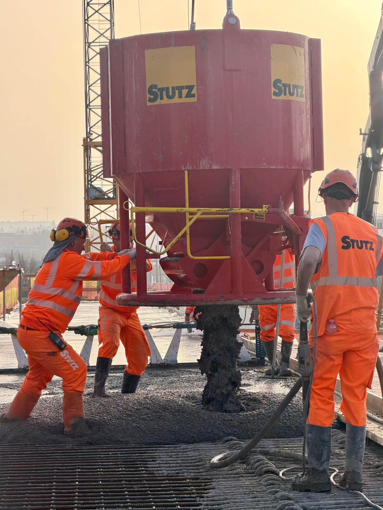 Es wurde von zwei Seiten her betoniert: von einer per Kran, von der anderen mit einer Betonpumpe. Innert 12 Stunden wurden so knapp 1000 Kubikmeter Beton eingebaut. Unsere routinierte Brückenbauer-Equipe konnte am Ende eines langen Tages auf einen erfolgreichen Sondereinsatz zurückblicken.