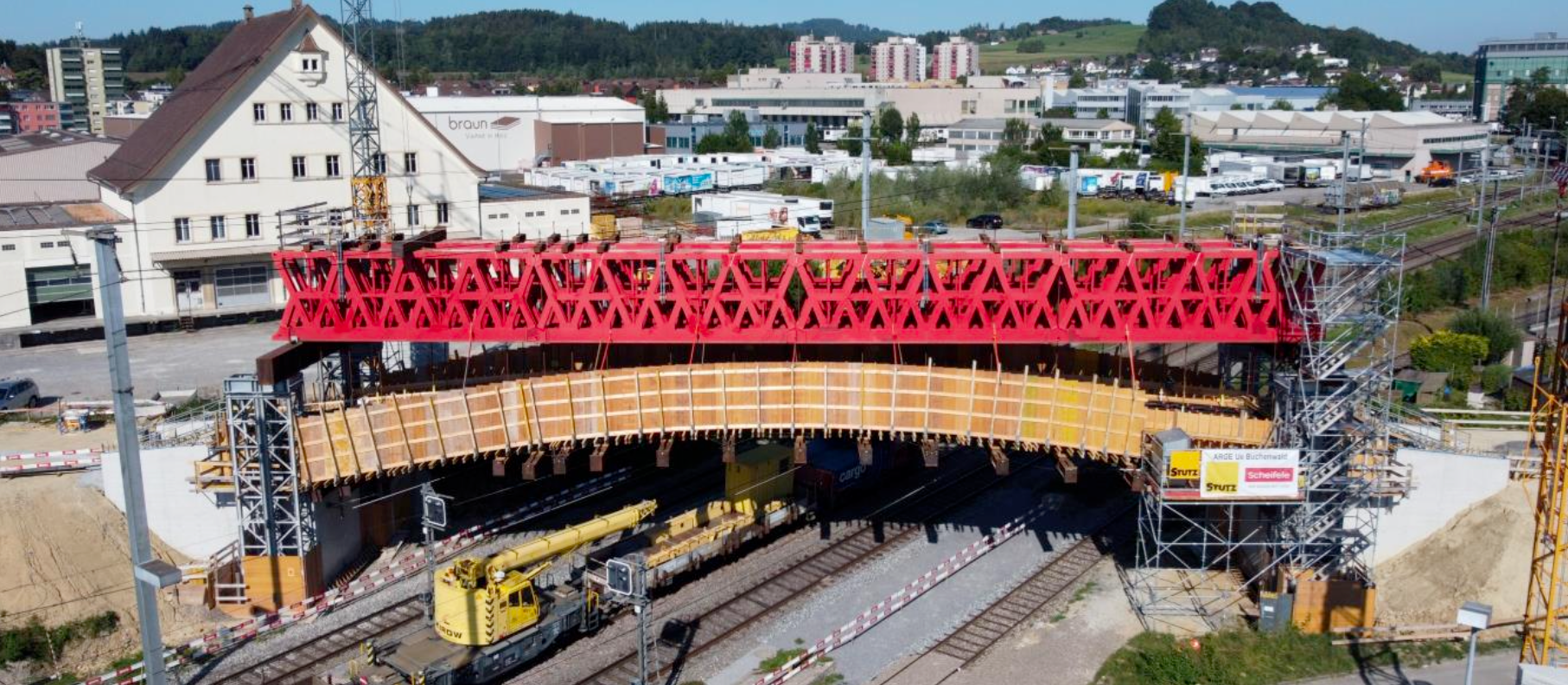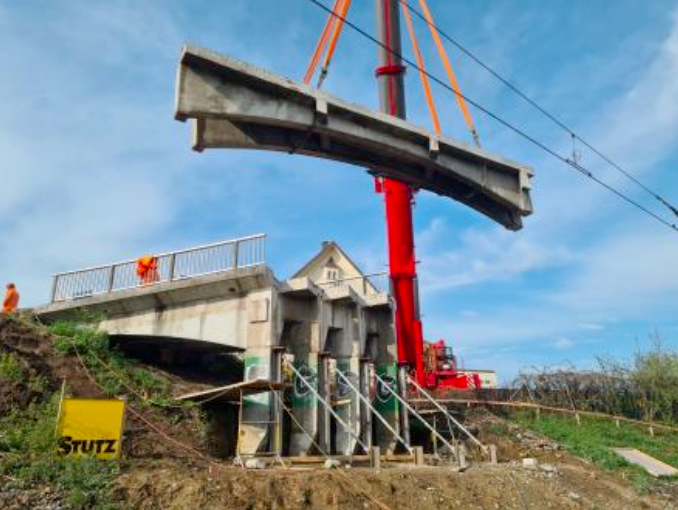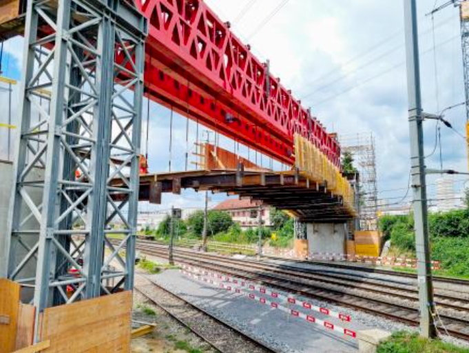 Besonderheiten: Rückbau- als auch die Neubauarbeiten unter laufendem Bahnbetrieb, obenliegendes Lehrgerüst, Erschwernisse durch 4 Gleise/Fahrleitung sowie 5 Übertragungsleitungen im Bauperimeter.