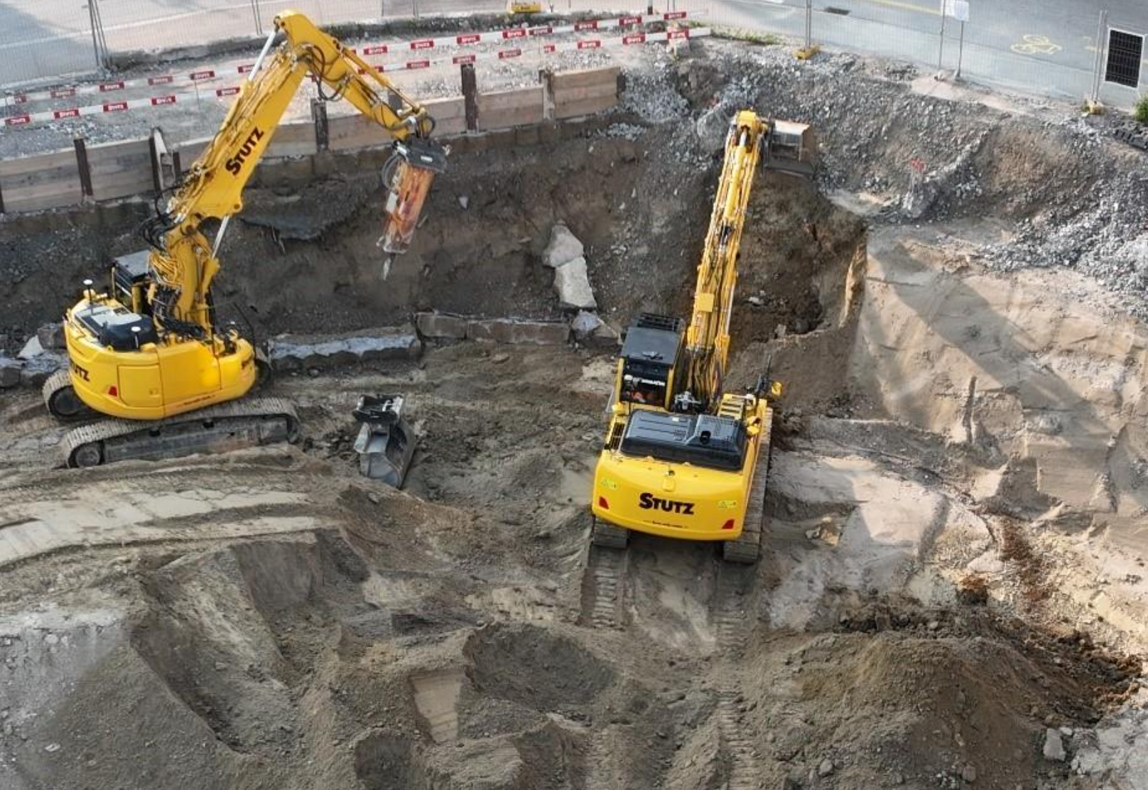 Das Projekt befindet sich in innerstädtischer Lage mit dichter Bebauung und begrenzten Platzverhältnissen. Es bestehen erhöhte Anforderungen an koordinierter Logistik, Sicherheit, Immissionsschutz sowie Koordination. Startend mit dem Rückbau des Industrieareals folgte zeitnah der Baugrubenaushub mit vertikalen Baugrubenabschlüssen.